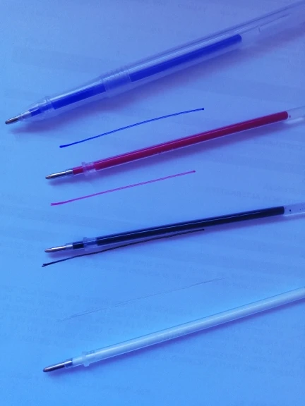 Быстрая доставка. Статья соответствует описанию. Тест, проведенный на белой ручке: через несколько минут сушки чернила хорошо видны. Затем нагревается железом, белая чернила исчезли. Более темный бренд виден, но исчез при трении. Я не проверял другие цвета