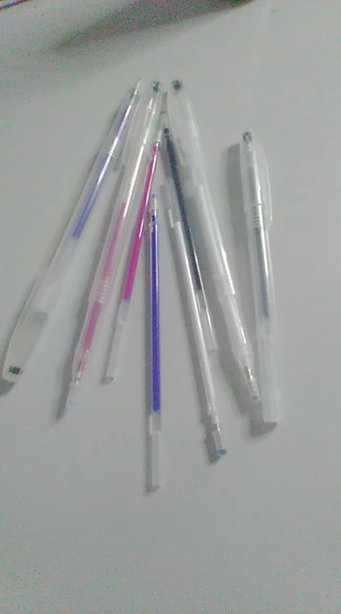 Белые чернила не пишут. Получила четыре ручки и 8 стержней.