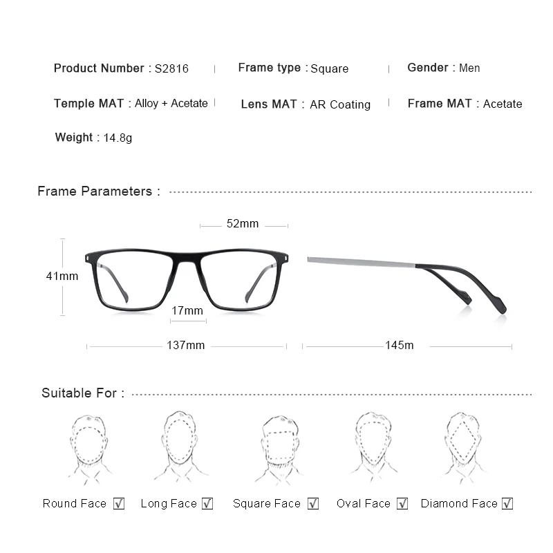 Мужская ацетатная оправа для очков MERRYS, дизайнерская квадратная ...