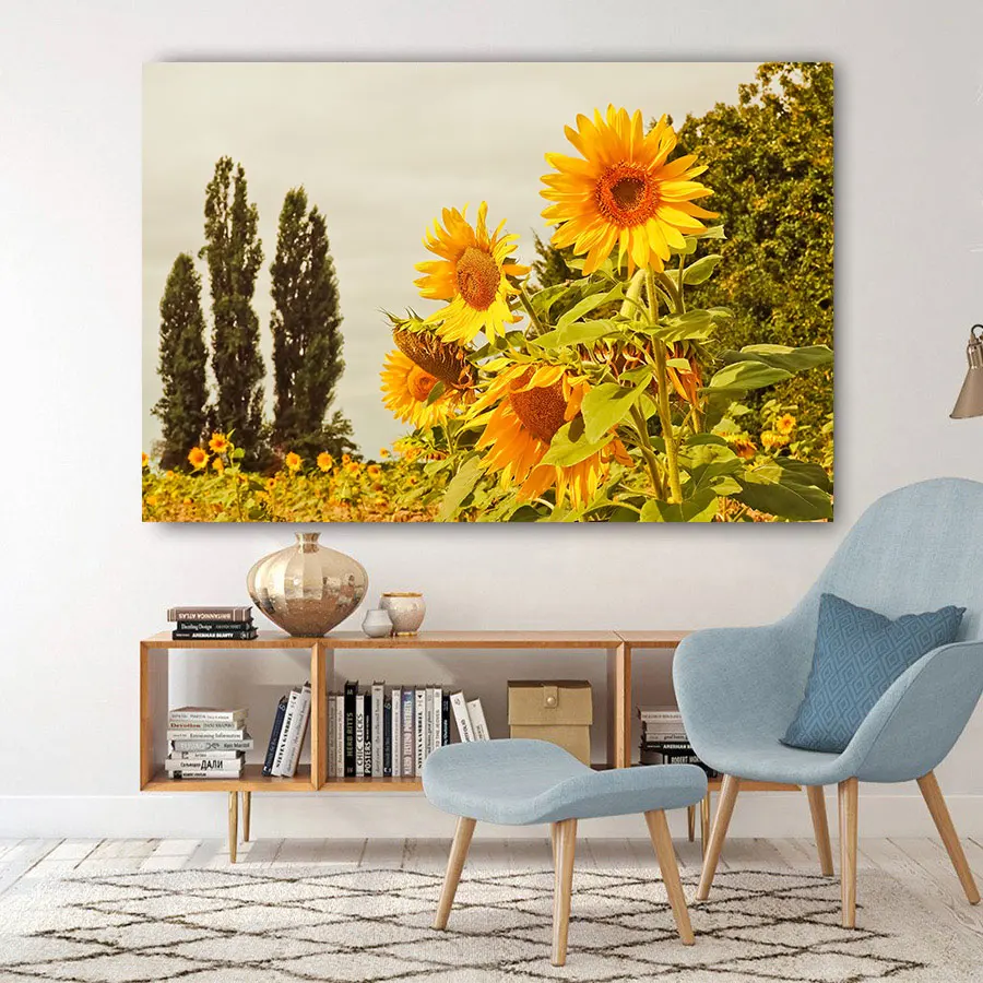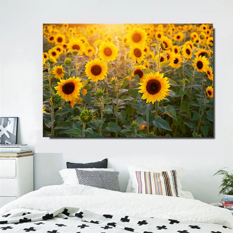 Корейский стиль, Картина на холсте, закат стены искусства подсолнечника поле фотографии цветок пейзаж Плакаты и принтами для Гостиная домашний декор