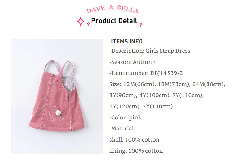 DBJ14539-2 dave bellaосеннее платье принцессы с цветочным принтом и карманами для маленьких девочек; Вечерние платья на подтяжках в стиле Лолиты; Одежда для малышей