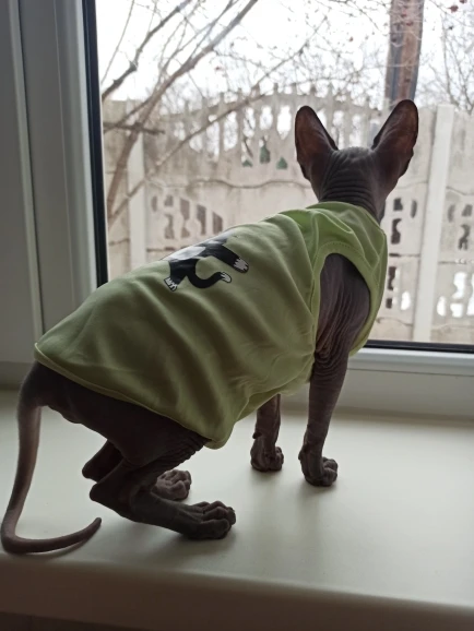 хорошая кофточка, думала будет больше хлопка. размер соответствует. кошка довольна