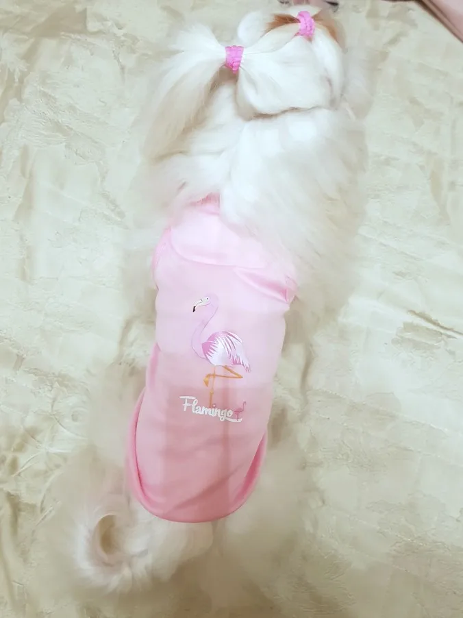 Летняя одежда для домашних животных, футболка для собак, жилет для собак с принтом фламинго, для маленьких и средних собак, аксессуары для животных принадлежности жилет для кошек, рубашки XS-2XL