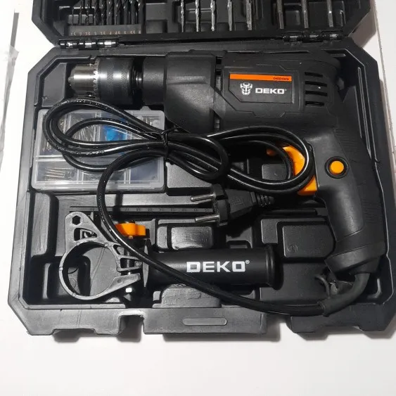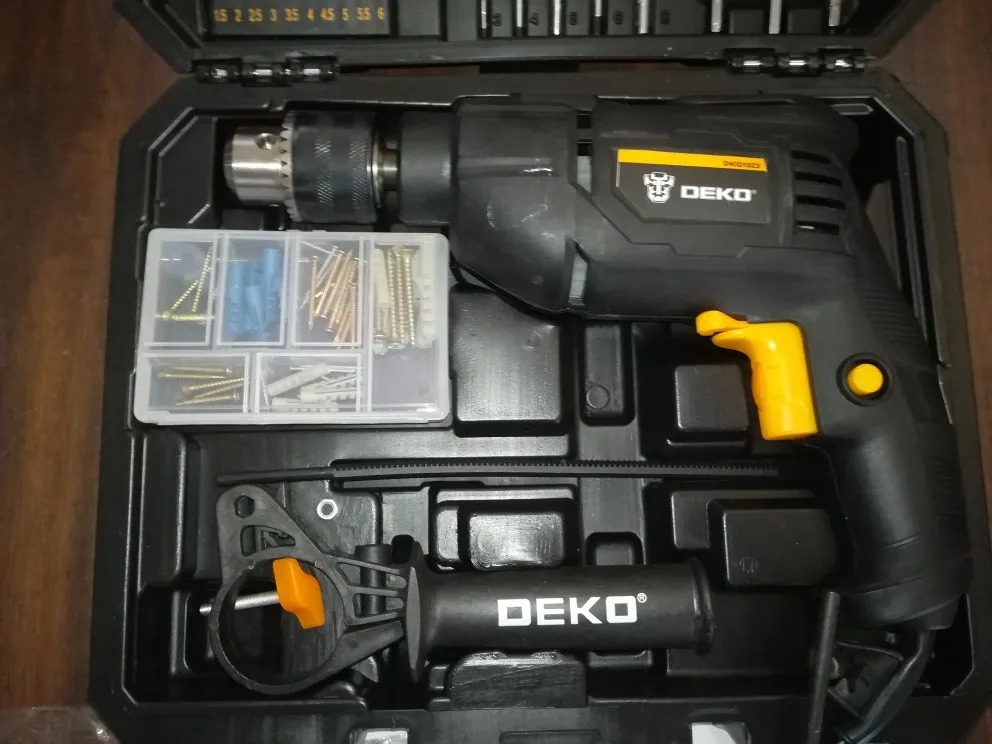 Дрель DEKO DKID13Z2 - мощностью 550W https://s.click.aliexpress.com/e/_AYn7as 2 режима: ударный и безударный Регулировка оборотов Максимальный диаметр сверления: 12,5 мм Скорость сверления: 0-3000 об/мин Комплект: дрель, инструкция, направляющий, съемная ручка, 2 запасных щетки, коробка. Вилка евро. Доставка Службой Укрпошта со склада в Украине за 3 дня.
