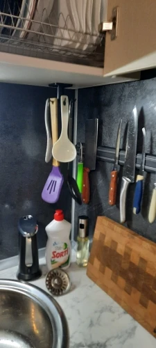 Очень интересное дополнение на кухню. Крепится легко, надеюсь, что удержит набор для готовки.