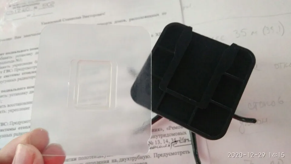 3 недели до Ростова-на-Дону. Всё целое. Клея или двустороннего скотча на устройстве нет. Есть какя-то прозрачная пластина, которая вставляется в него. Но я не смогла найти на ней пленку, или липкий слой. Возможно эту пластину самим надо клеем смазывать. В остальном всё ок.