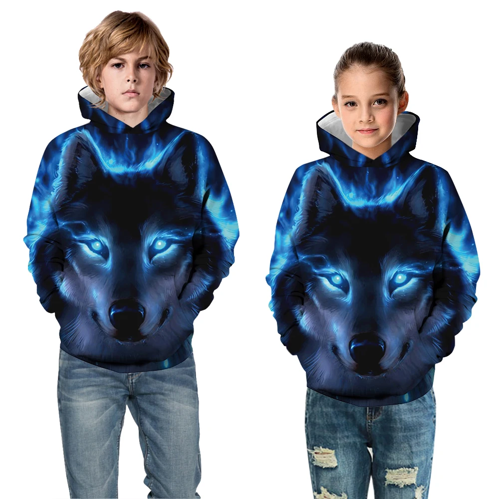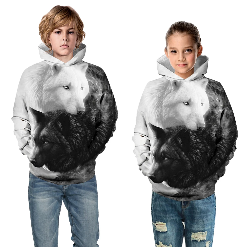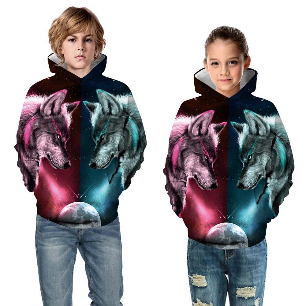 Детские толстовки с 3D принтом волка для девочек и мальчиков, Толст...