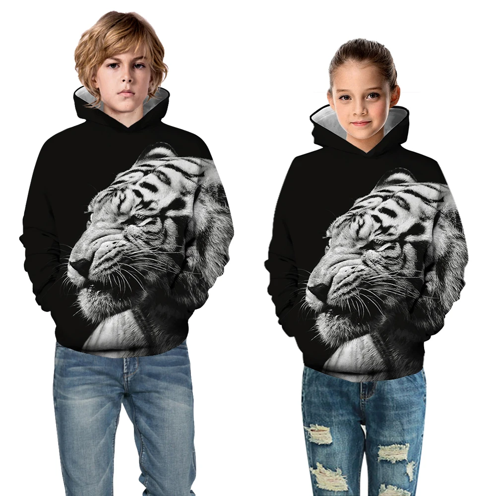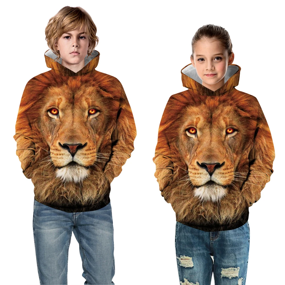 Толстовка с капюшоном для мальчиков и девочек, Свитшот со львом, ти...