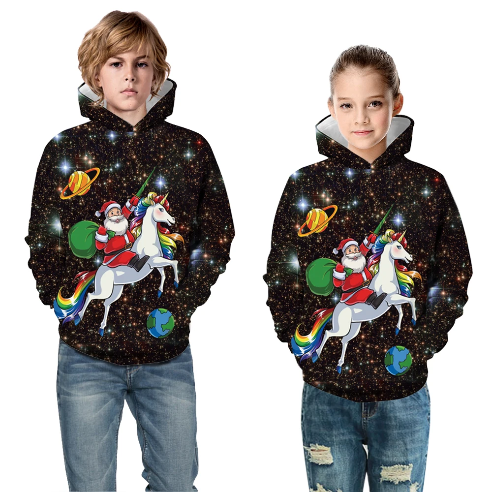 Толстовки с 3D-принтом для мальчиков и девочек, детские рождественские пальто, пуловер с единорогом, топы, свитшоты, одежда для мальчиков на весну и осень