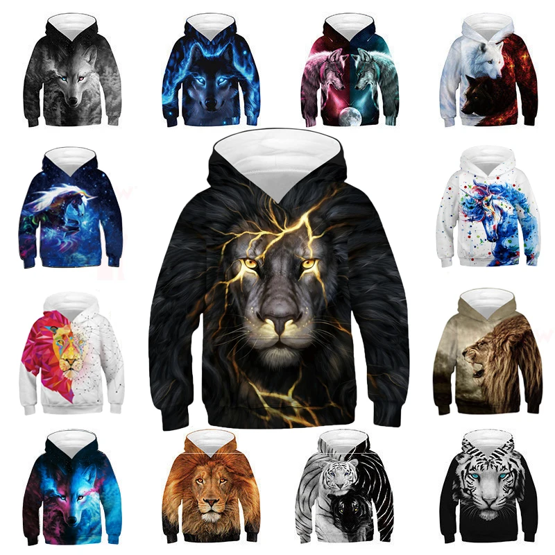 Толстовки для мальчиков с 3D рисунком льва и волка весенний свитшот...