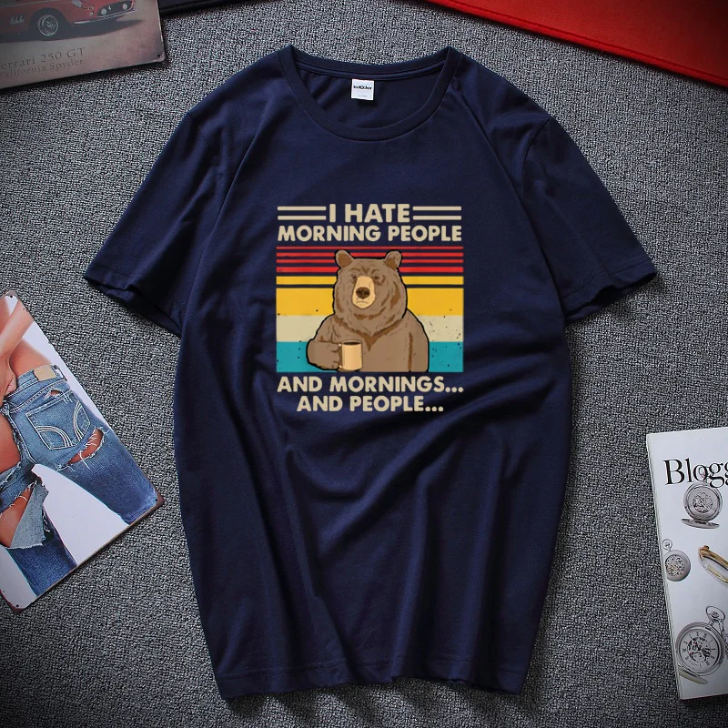 Футболка с надписью I Hate Morning People And Mornings And People футболка в стиле ретро с забавными медведями, напитками, кофе, Lover хлопковая футболка