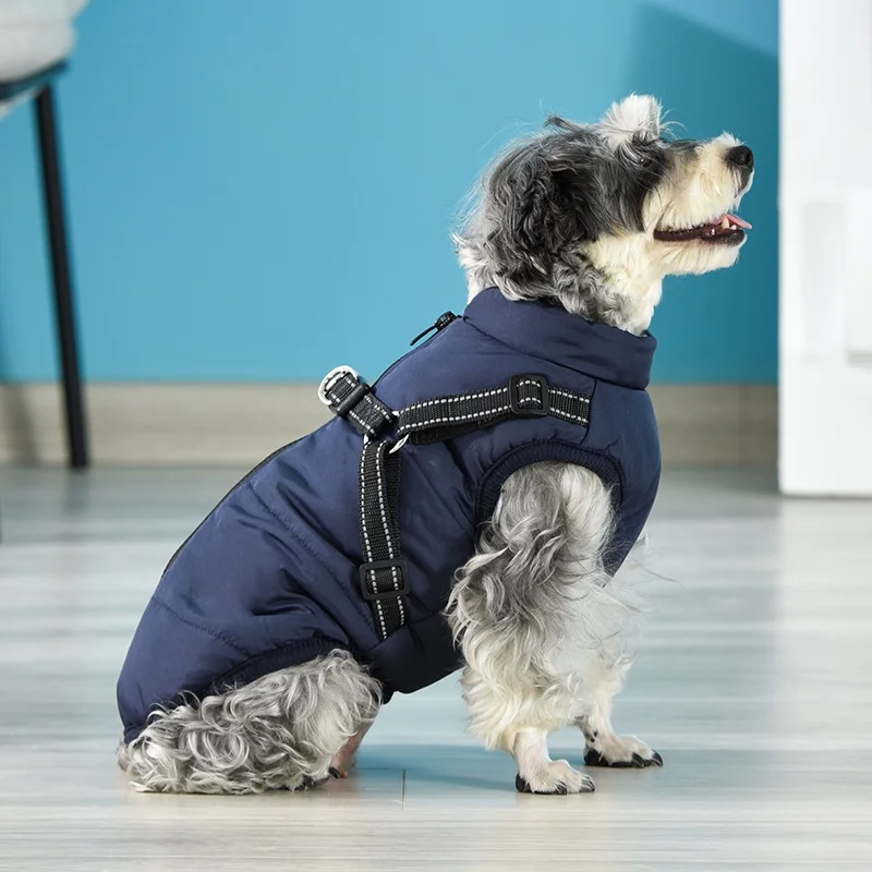 Одежда для домашних животных, зимняя теплая куртка с ремнями, для щенков, для прогулок на улице, регулируемый нагрудный ремень, жилет из ткани для собак, зимняя одежда