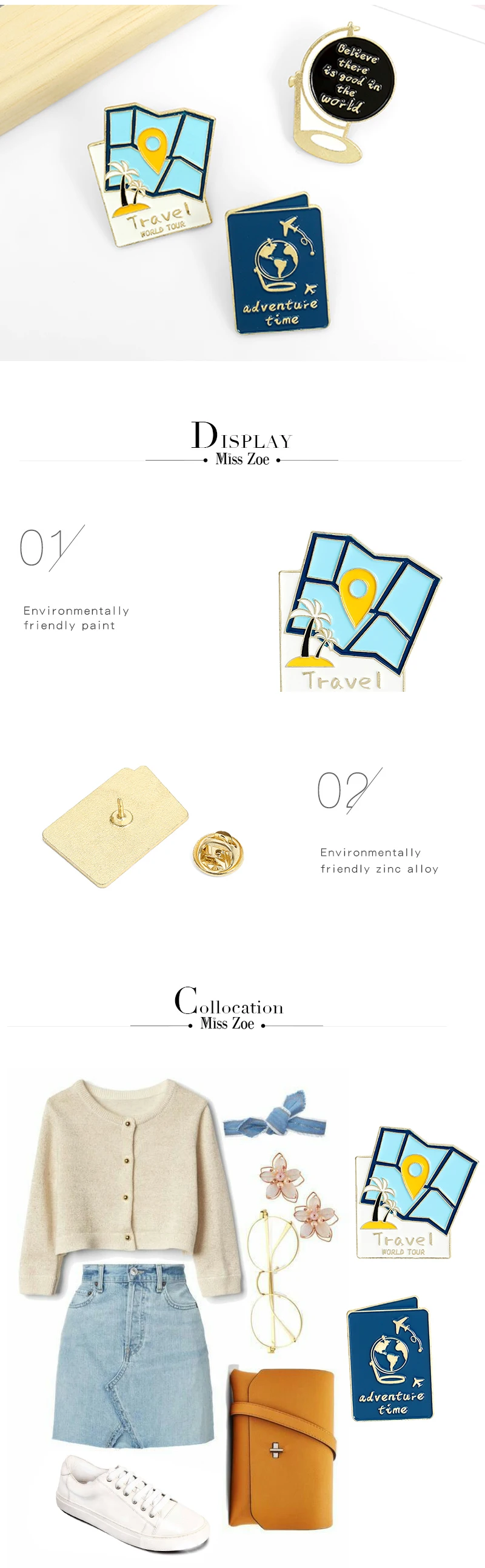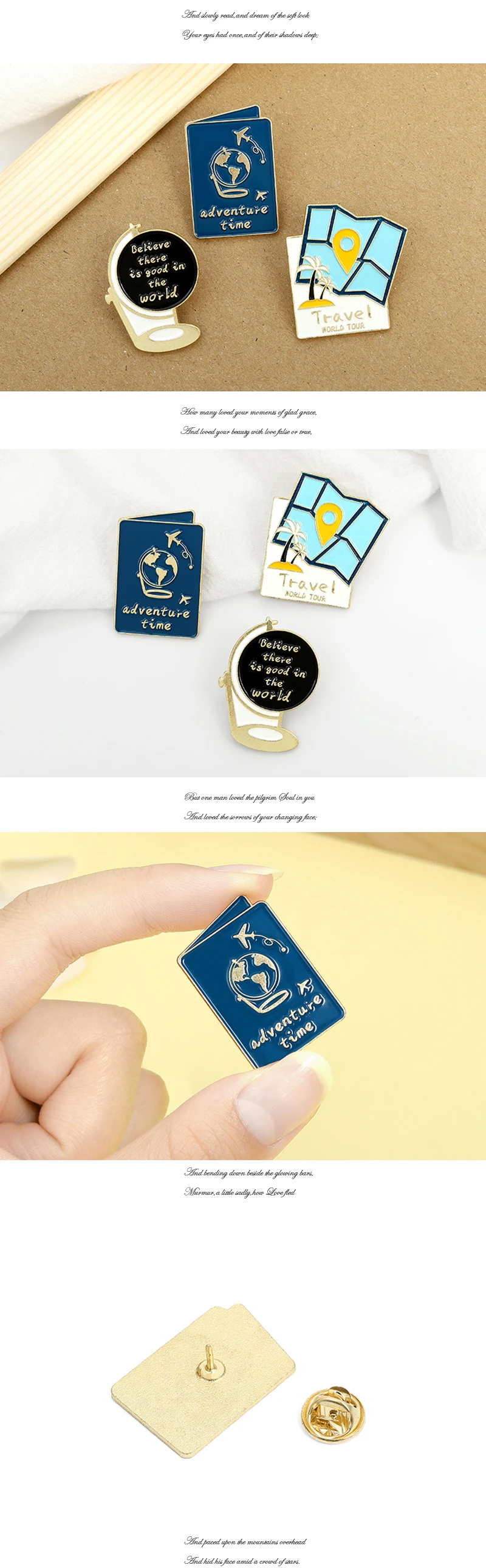 Заколки с эмалью для путешественников, украшения на заказ, карта глобус, паспорт, нагрудный знак брошь, рубашка, сумка со значком, мир приключений, тур, ювелирное украшение, подарок для друзей