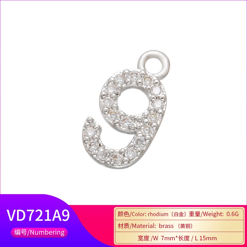ZHUKOU большой кулон в виде цифр с кристаллами фианита для изготовления ювелирных изделий, серьги сделай сам, ожерелье, аксессуары для ювелирных изделий VD721