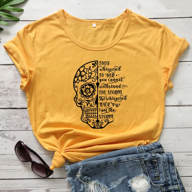 Цветная футболка из 100% хлопка с изображением черепа для хэллоуиве...