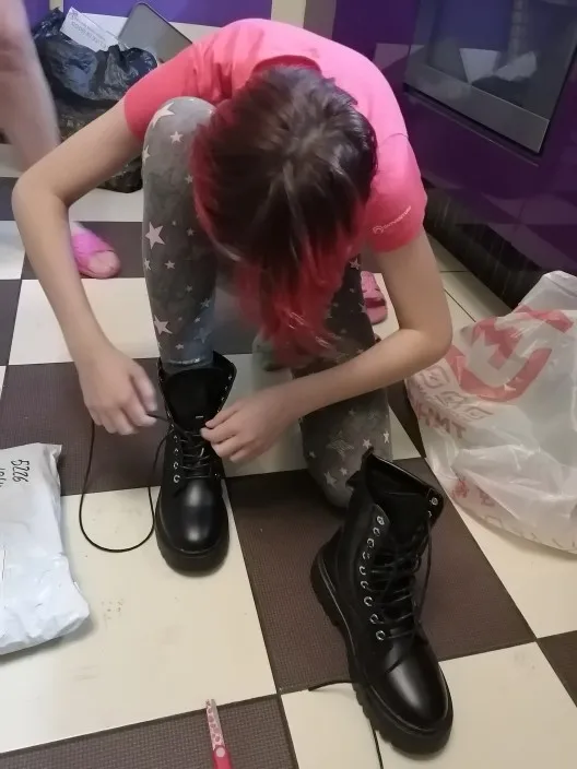 Ботиночки хорошие, на свой 38 заказала 40, чтобы если что носочек пододеть. Подошва класс, на гололеде не скользит. В -2 не замёрзла в них. Единственное, конечно, нужно будет их расходить.