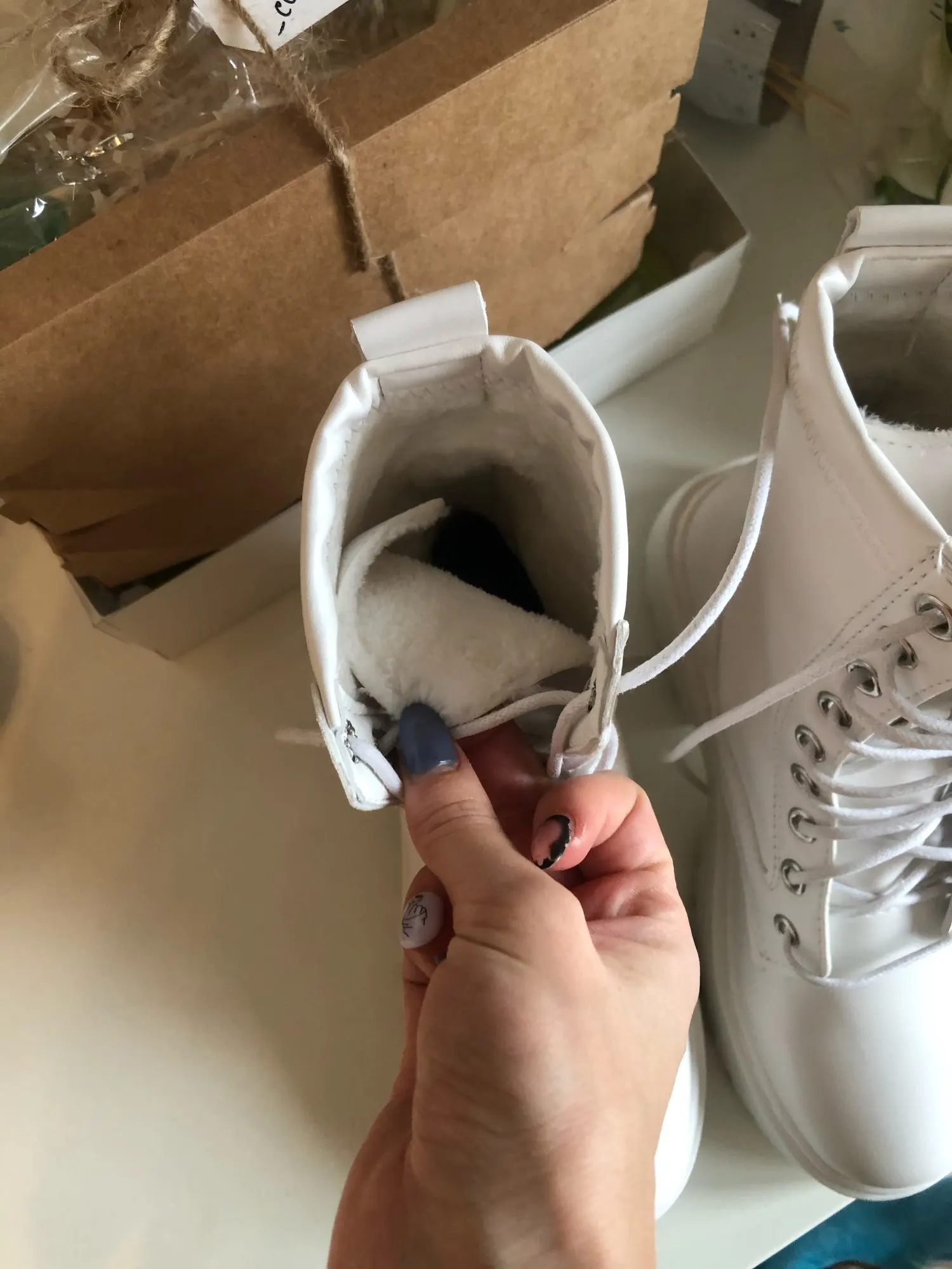 Пришли ботинки очень быстро. На удивление они мягкие и удобные, были хорошо упакованы. Выглядят очень круто, ещё и по такой цене, брала за 1166₽ по купону али. Единственное жизнь их будет коротка, думаю подошва быстро лопнет. А сам материал напоминает плотную вату, покрытую плотным пакетом. Но если не ходить в них каждый день, а по особенным дням, то отлично