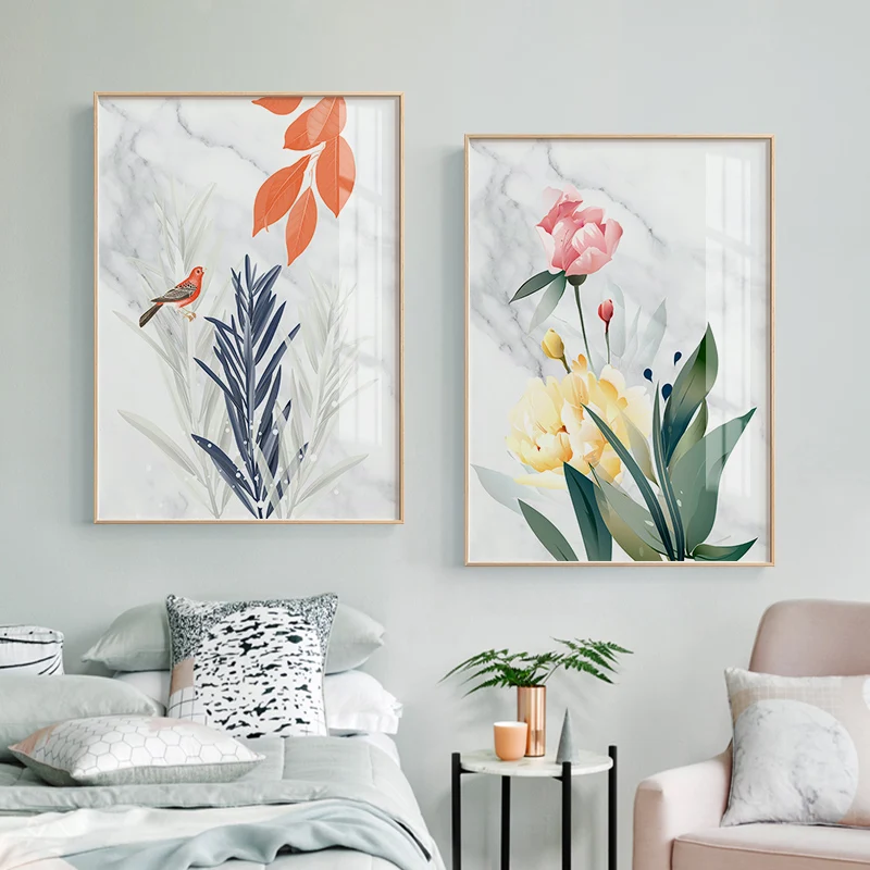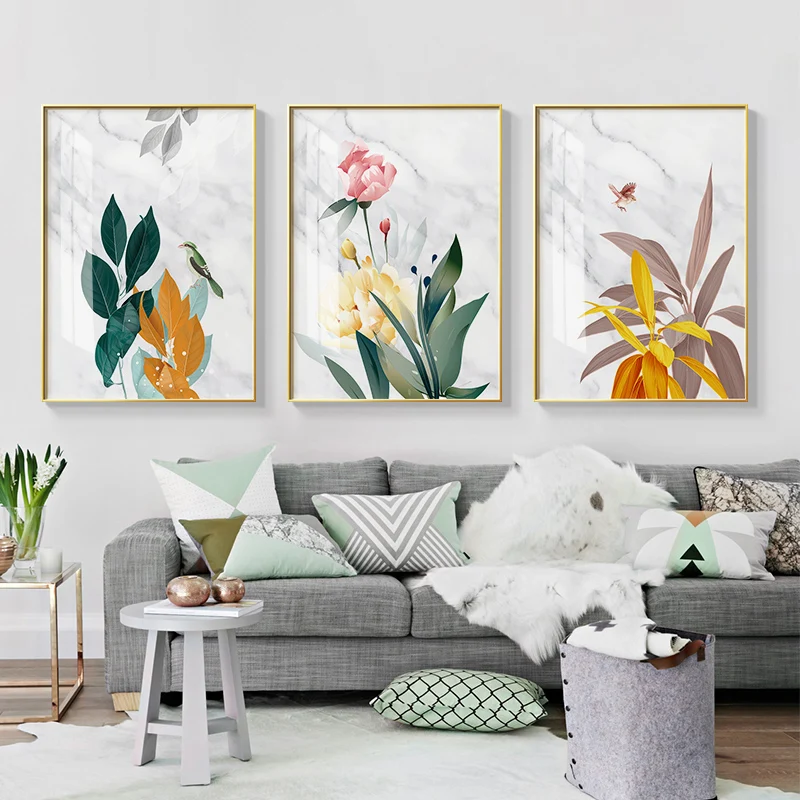 Настенные картины с цветами и листьями для гостиной, украшение для дома в скандинавском стиле, настенная Картина на холсте, постеры и принты