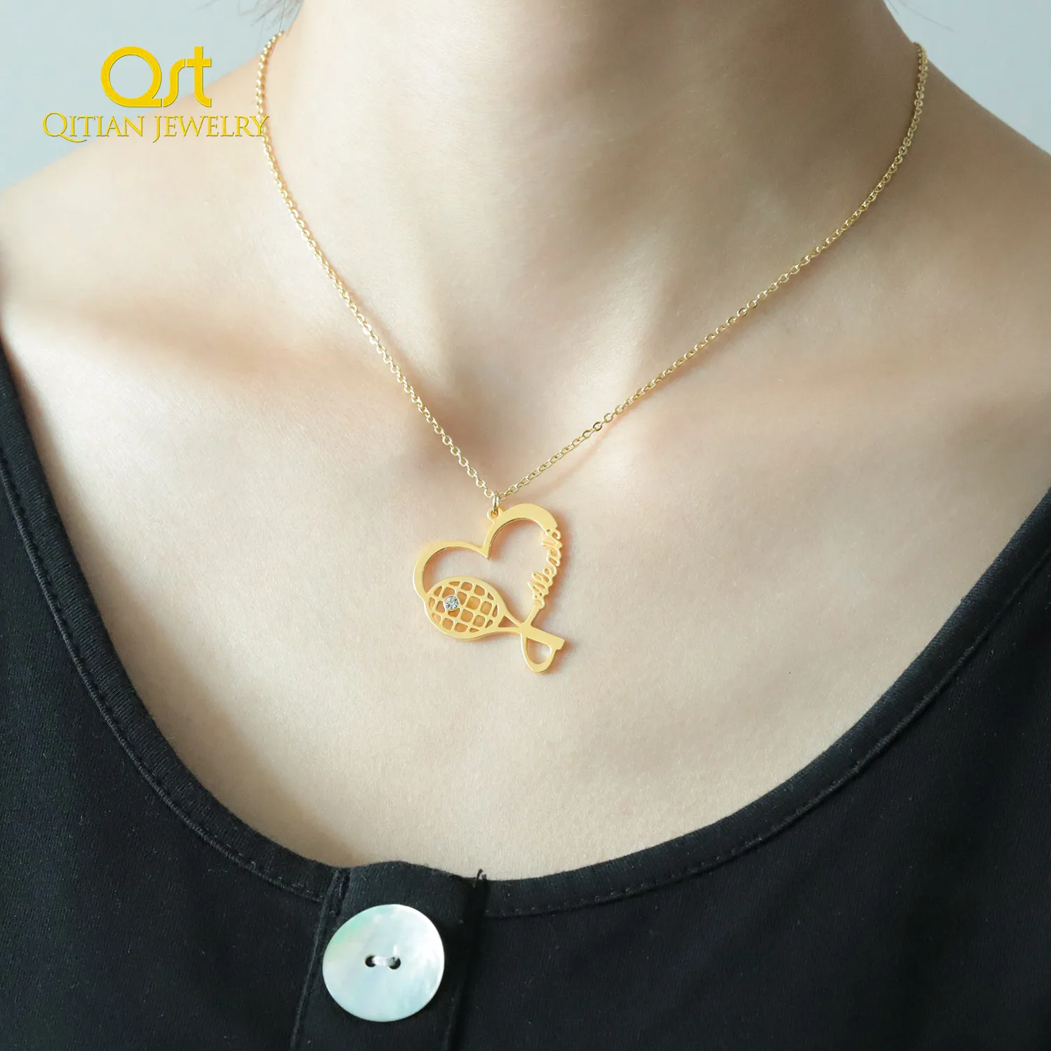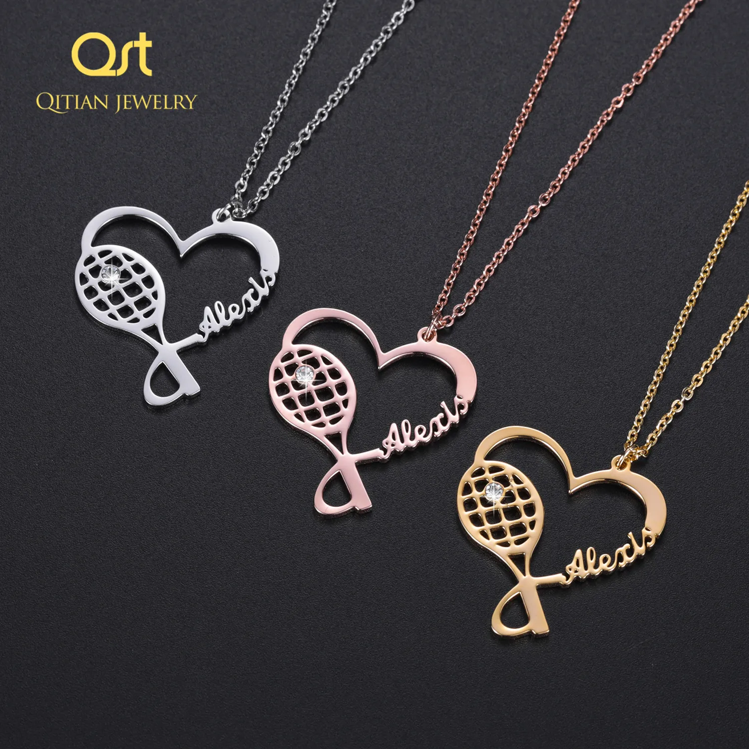 Персонализированные теннисное имя ожерелье камень рождения профессия кулон цепь на заказ ожерелье с ракеткой ожерелье подарок для теннисиста