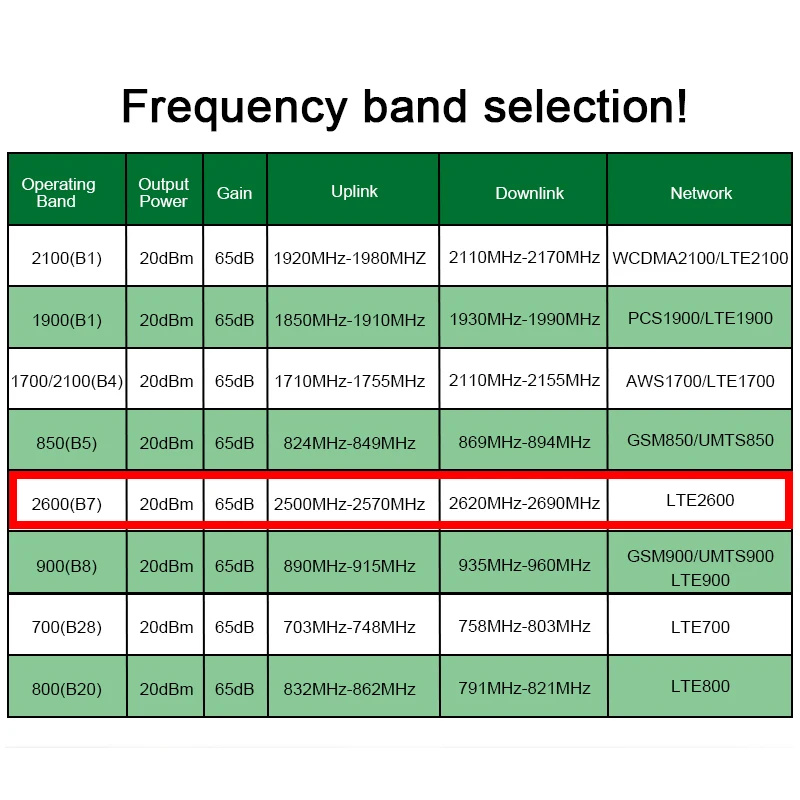 Frequency Band4G LTE 2600 MHz