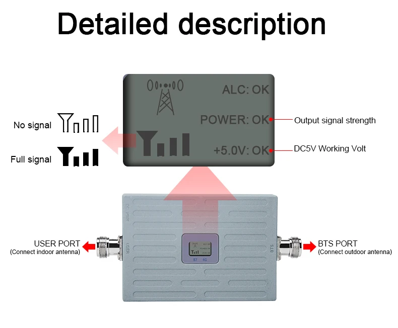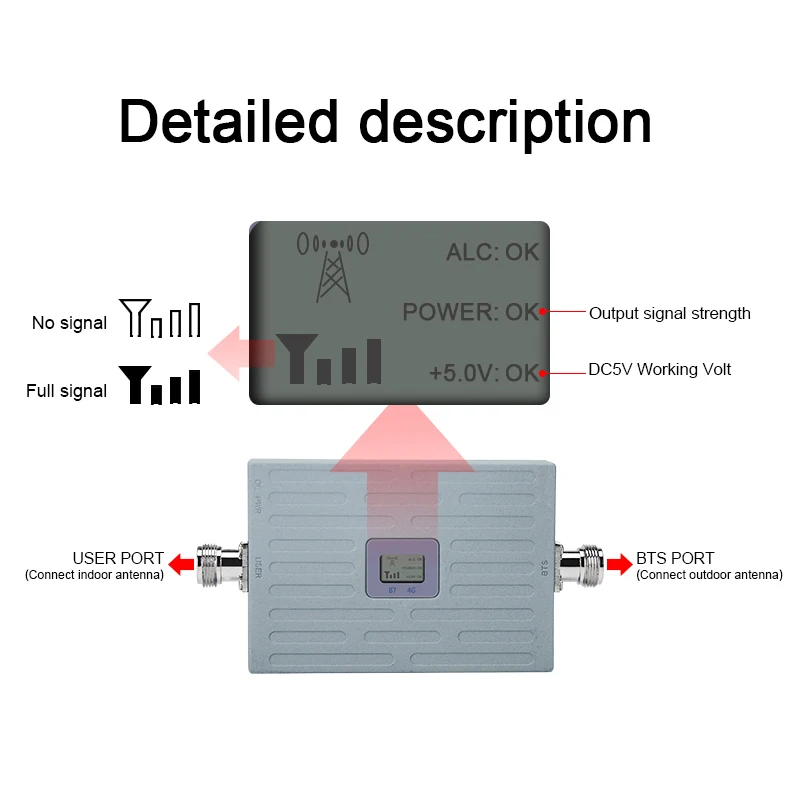 1. Может улучшить вашу сеть сигнала 4G2. Диапазон частот: 4G LTE 2600 МГц (полоса 7)Канал связи: 2500-2570 МГц нисходящий канал: 2620-2690 МГц3. ЖК-дисплей может указывать состояние сигнала, силу.4. Усиление: 65 дБ/Выходная мощность: 17 дБм5. Площадь покрытия: около 100 ~ 300 кв. М без барьера. Подходит для дома, офиса.6. Мини-размер, небольшой размер уменьшает транспортные расходы.