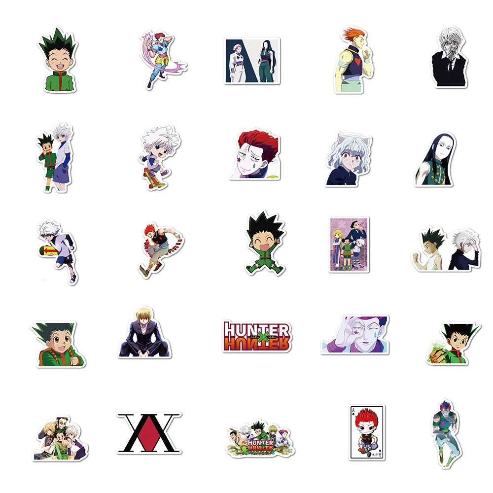 50 шт. наклейки HUNTERxHUNTER, коллекция японских мультяшных аниме, 4-7 см, пвх чемодан, ноутбук, граффити скейтборд, водостойкая наклейка