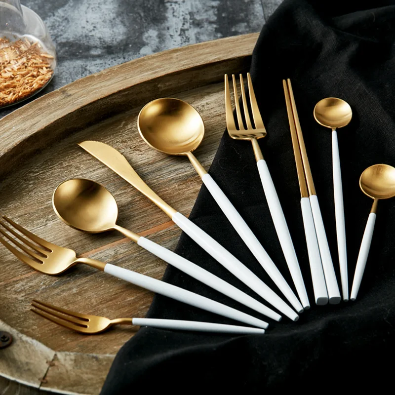 Домашняя посуда, столовые приборы из нержавеющей стали белого золота, набор ложек и вилок, столовые приборы из нержавеющей стали, набор столовых приборов, экологичный