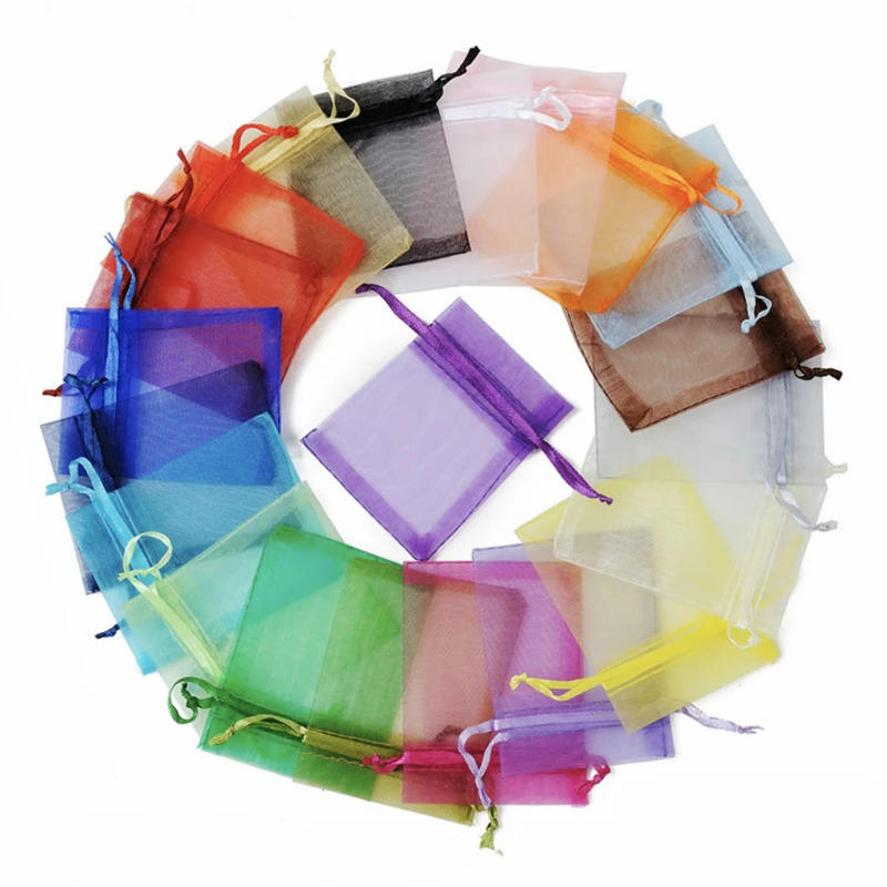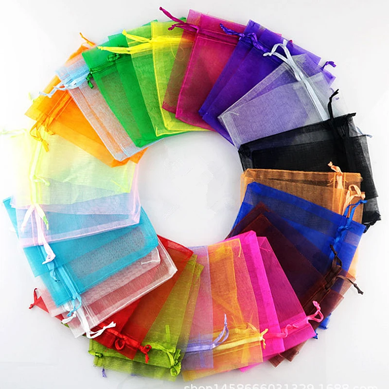 50 шт.лот 5x7 см 7x9 см сумки из органзы на шнурке мешки для упаковки ювелирных изделий конфеты свадебные сумки оптовая продажа подарков