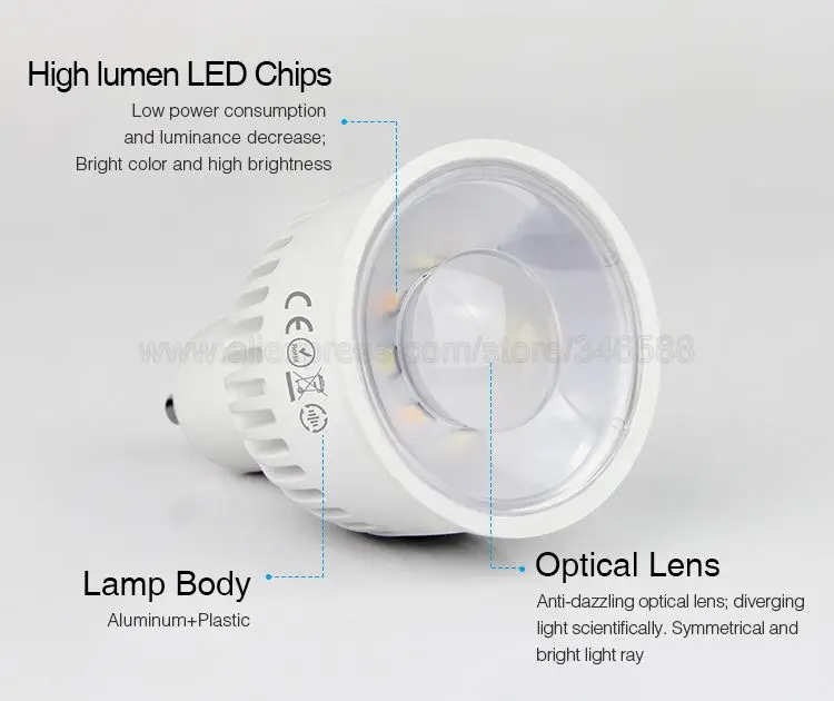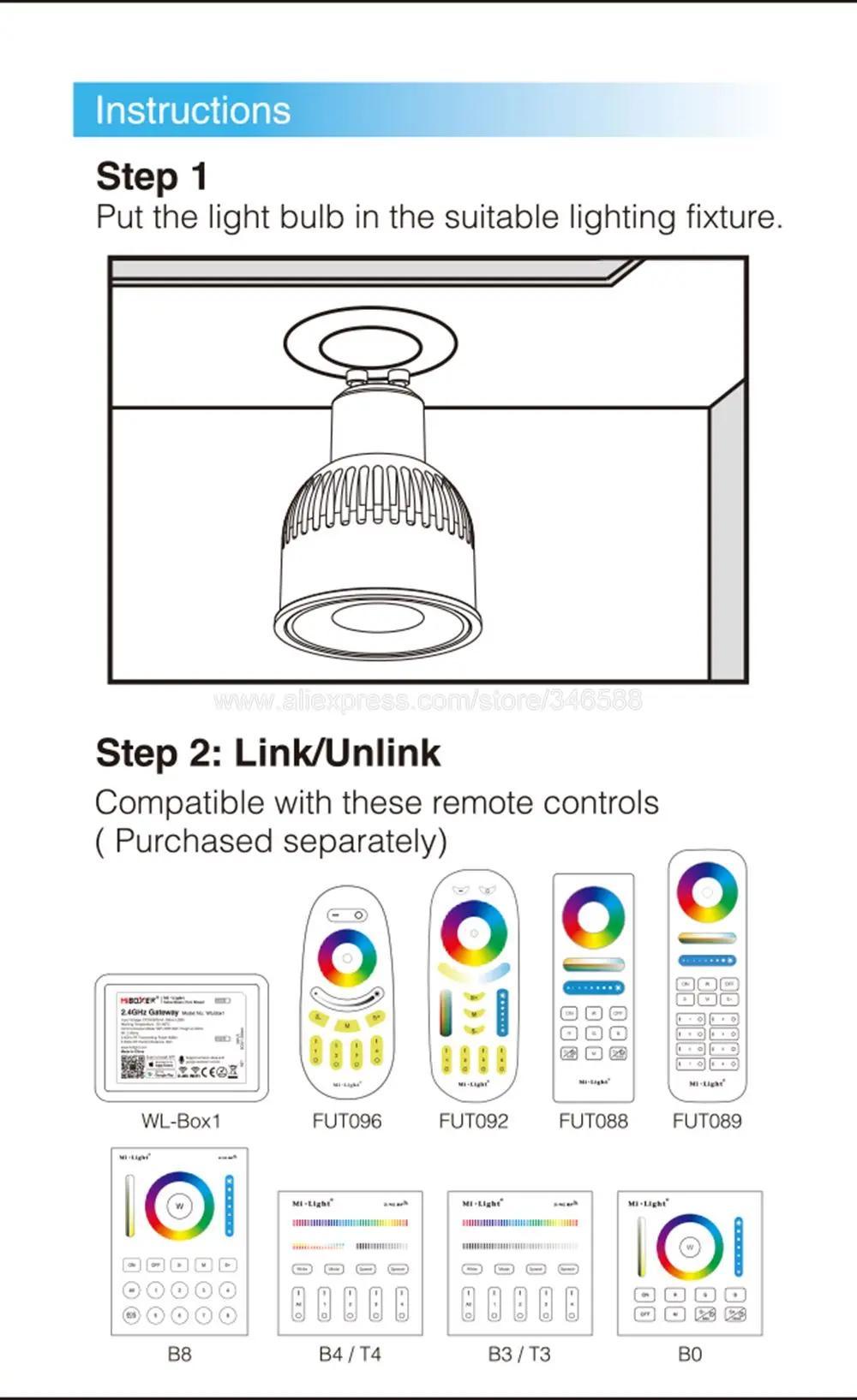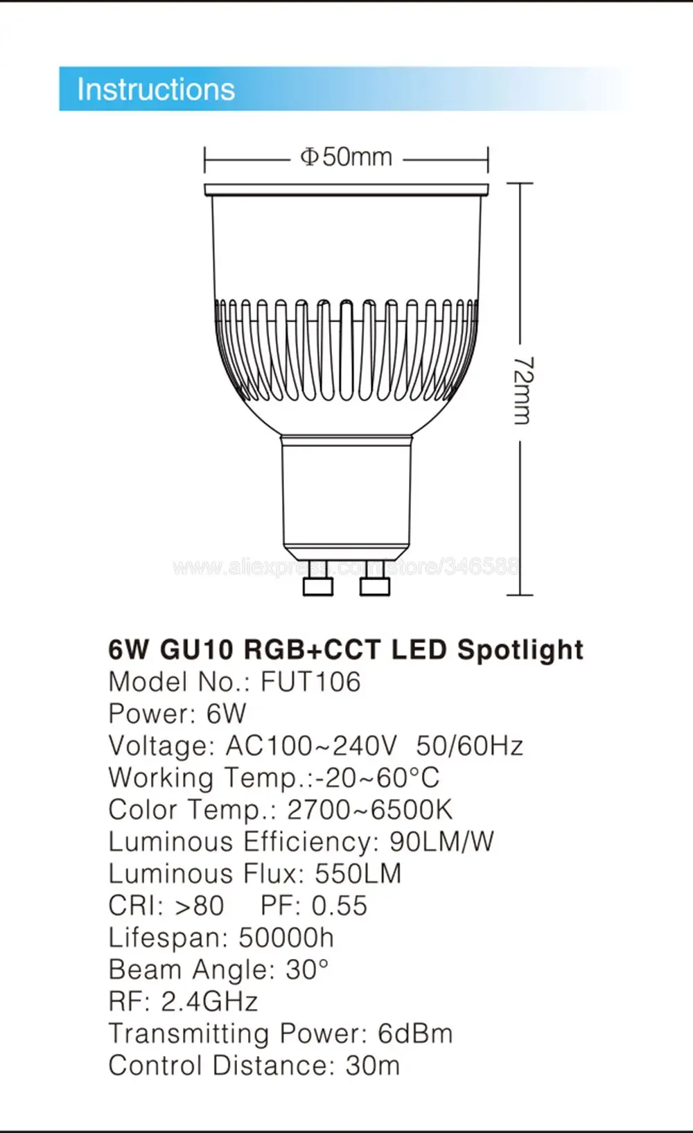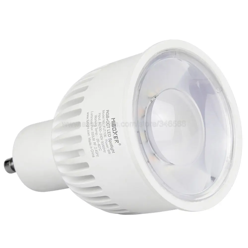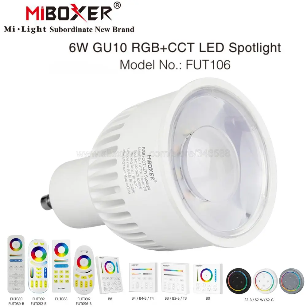 MiBoxer 2,4G 6W GU10 RGB + CCT Светодиодная лампа точечного светильника FUT106 диммируемая лампа с поддержкой 2,4G 4 зоны дистанционного управленияWi-Fi приложениеГолосовое управление
