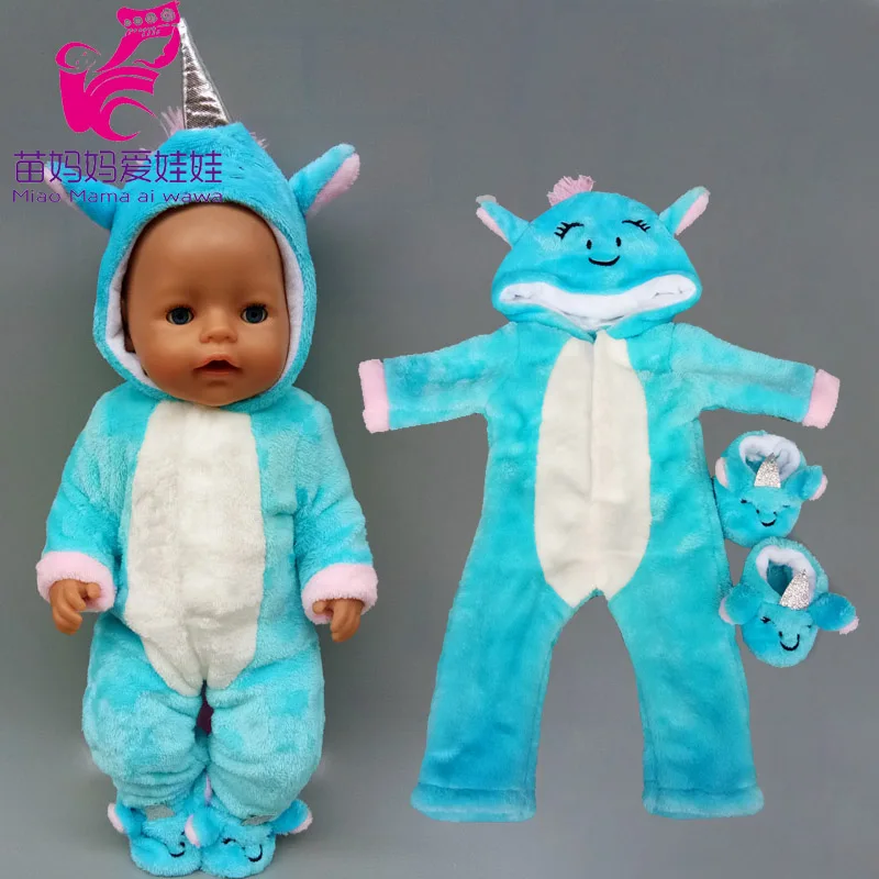 Комбинезон для куклы, 17 дюймов, комбинезон для сна с единорогом + тапочки для куклы 18 дюймов