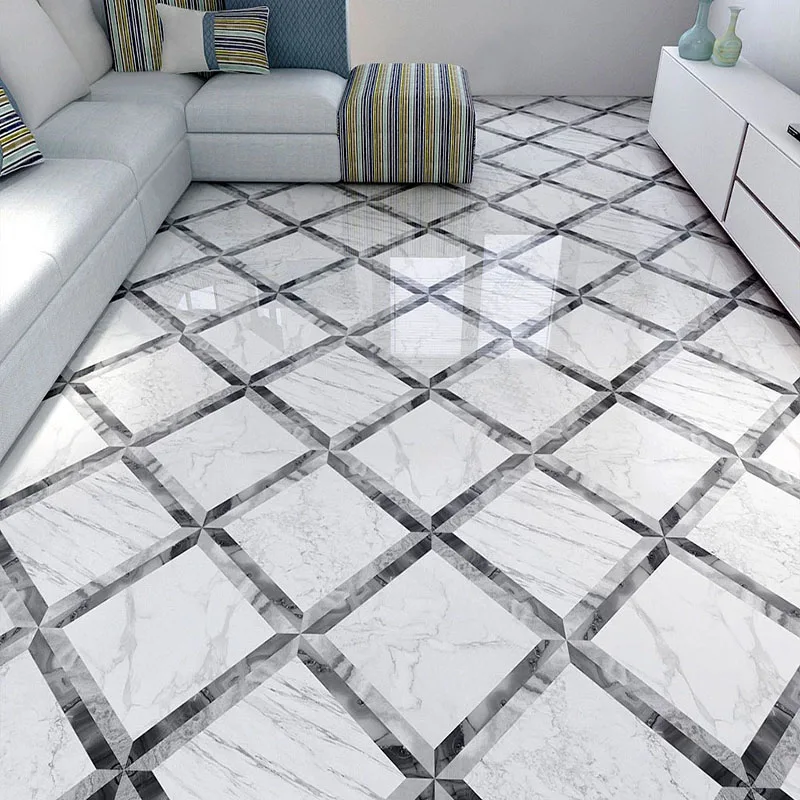 3D пола, настенные, современные, джаз, белая мраморная плитка, обои, гостиная, спальня, ванная, 3D Самоклеящиеся водостойкие наклейки из ПВХ