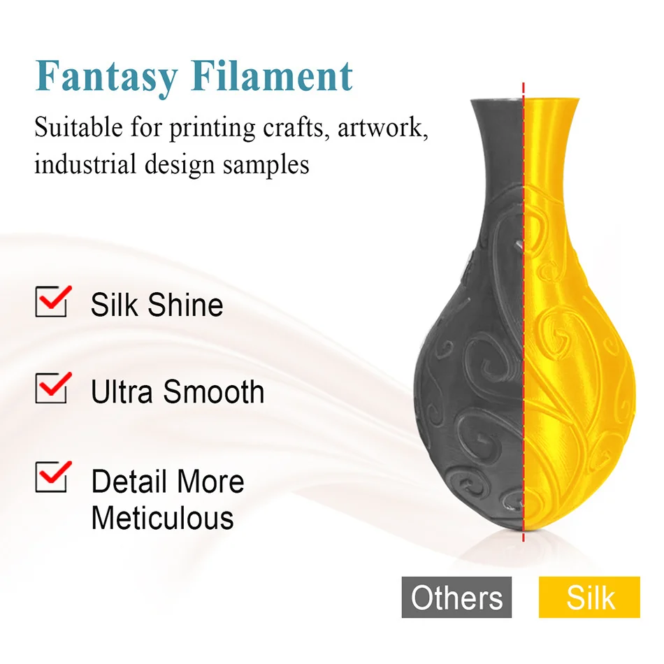 Шелковая нить pla разлагается, нетоксичный материал, близкий к шелковому эффекту, прочность более чем в 50 раз выше pla.Аккуратная намотка нити плавно, без запутывания.100% без пузырьковой 3d печати нити.