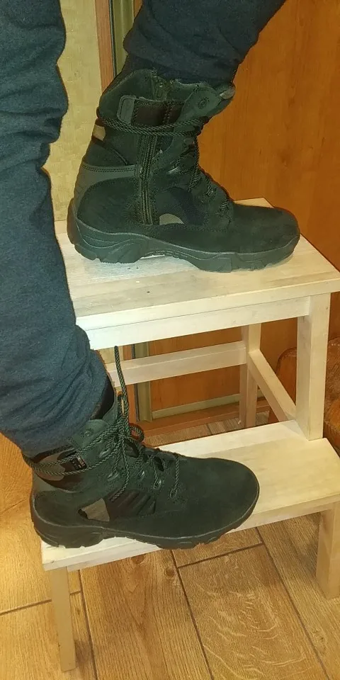 Товар соответствует фото. Размер 36 с небольшим запасом, скорее как 36.5, но точно не 37, думаю это особенность размерного ряда. По сезону сложилось ощущение, что пойдут на лето и весну, для пыльной и сухой погоды. Утепления нет. Язычок ботинок вшит. Есть подносок, от упавшего камня может и защитит, но не более. Это максимум ботинки для хайкинга, они не защищают от поворачивания ноги, но подошва должна с камнями справиться, она достаточно крепкая. Шнурки продеты в пластиковые петли, вшитые в ткань. Конструкция по ощущениям достаточно крепкая, вряд их будет так легко вырвать. Стопа и голеностоп не так плотно фиксируются, возможно более толстая стелька решит вопрос (толщина той, что в комплекте - пару миллиметров, смягчения пятки нет). Шнурки в комплекте свою функцию выполняют, но просится что-то покрепче, потолще и поинтереснее. Есть идея обработать водоотталкивающей пропиткой и заменить стельку на более толстую, ну и после попробовать ботинки на устойчивость к воде.