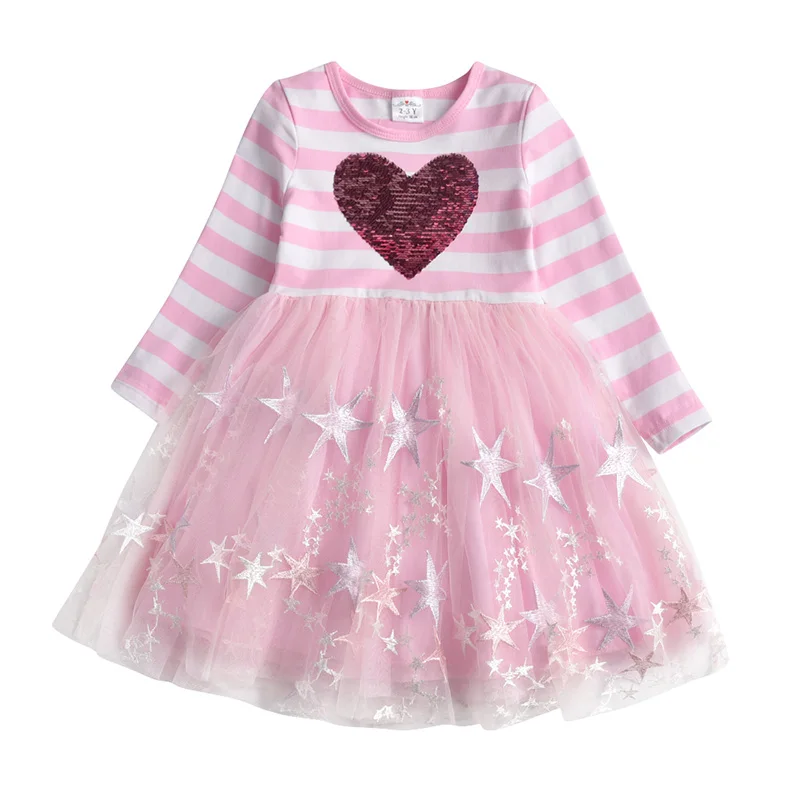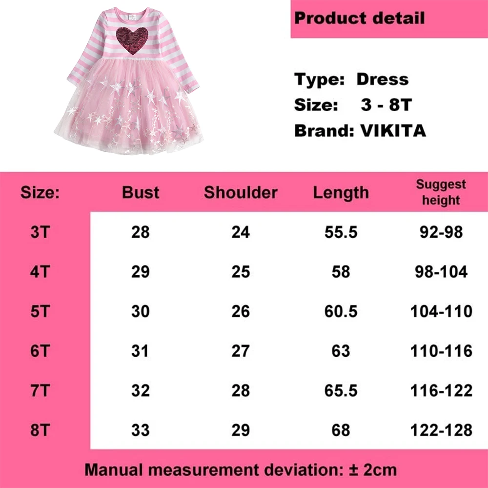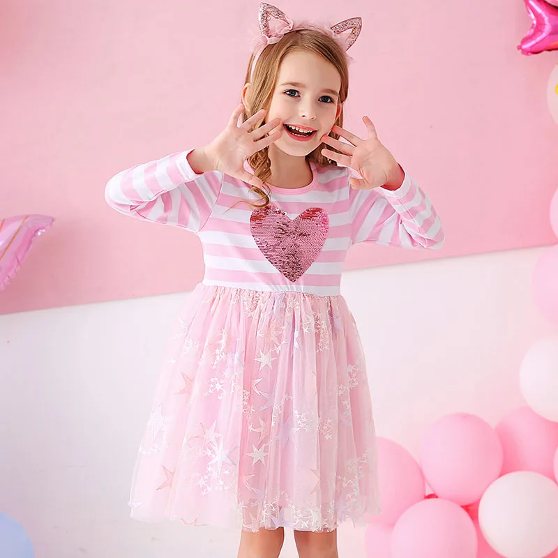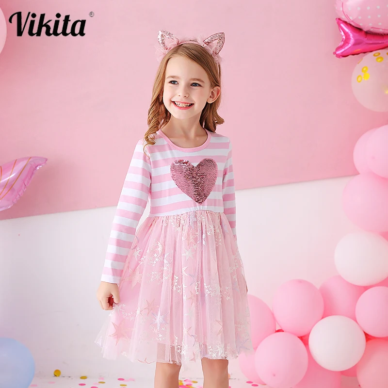 VIKITAПолосатое платье для девочек; Детское платье принцессы для девочек; Дизайнерские платья с сердечками; Школьная повседневная одежда для девочек; Одежда для детей