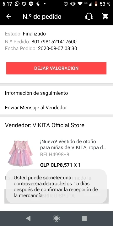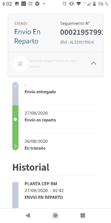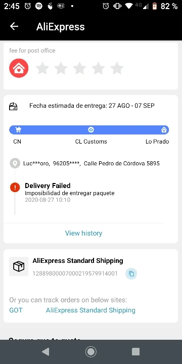 Мой продавец не получил его более 106 дней, и я не могу открыть спор, поскольку я сделал это дело продавцу, который сказал мне ждать 15 дней и быть терпеливым, Я сделал две претензии в почтовое отделение Чили, по одному звонку и по одному в лицом к лицу в том же почтовом отделении Чили, Я не отвечаю только на то, что сказала леди, которая посещала меня, невозможность доставки, может быть, посылка была потеряна, она надежна, так как она была заброшена с 27 августа. Очень разочарован покупкой, надеюсь, я не потеряю свои деньги