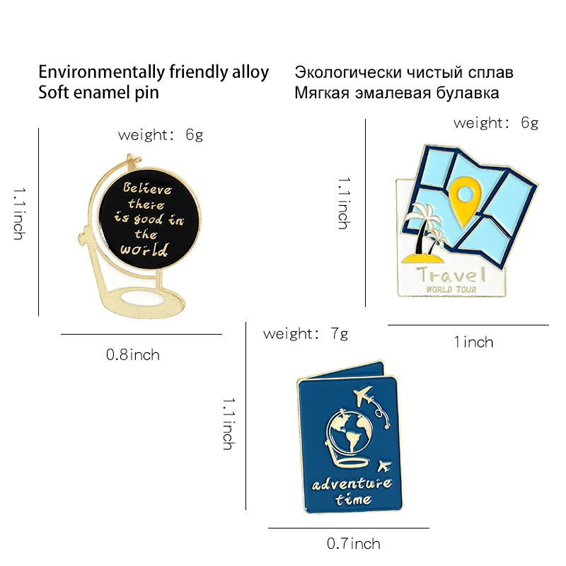 Заколки с эмалью для путешественников, украшения на заказ, карта гл...
