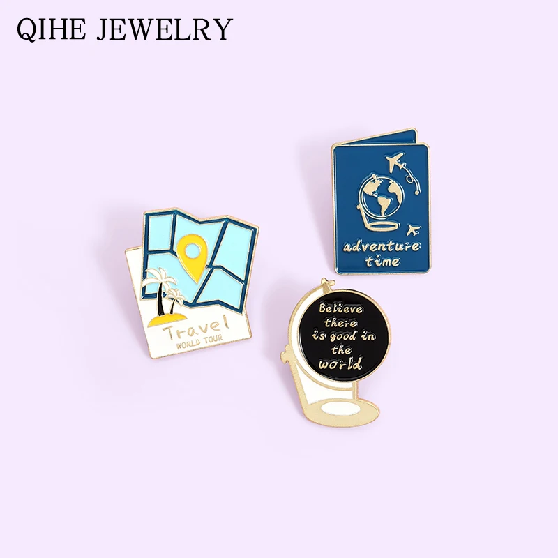 Эмалированная шпилька для путешествий по всему миру, Карта путешествий, карта, паспорт, эмалированная шпилька для лацкана, украшение для путешественника, значок для путешествий по миру, подарок для друзей
