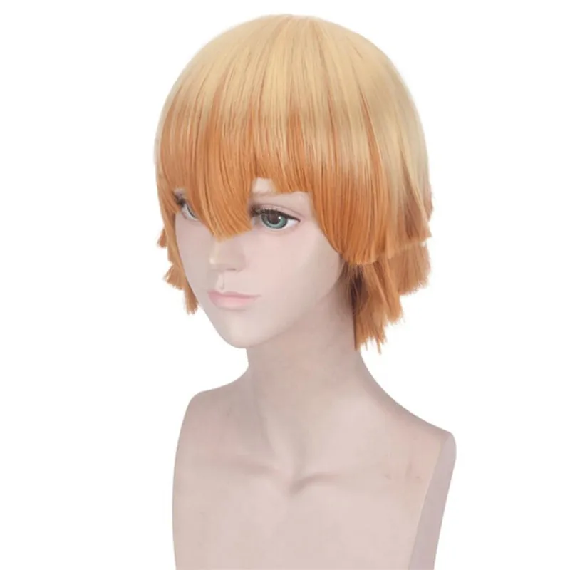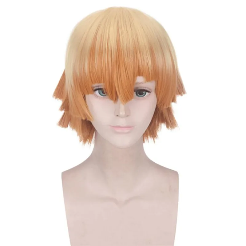 Парик Agatsuma Zenitsu Kimetsu no Yaiba, парик для косплея, желтый Синтетический термостойкий парик для косплея, Agatsuma Zenitsu