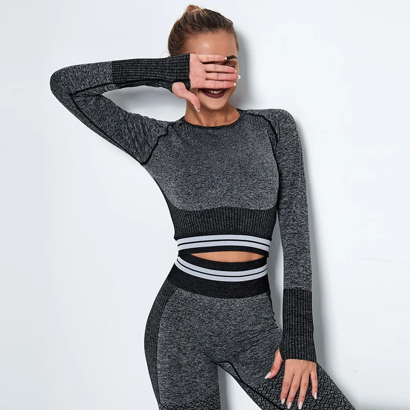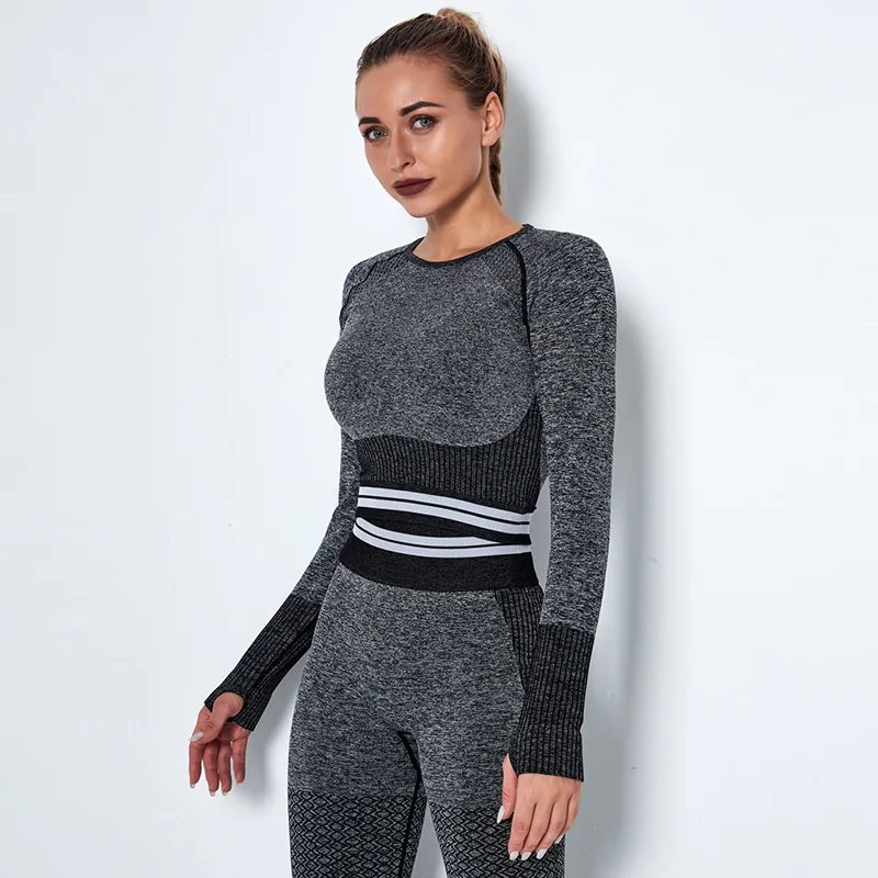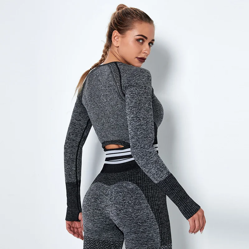 Женские беговые рубашки BlackArachnia с длинным рукавом, пикантные бесшовные футболки, однотонные спортивные рубашки, быстросохнущие Топы в полоску для фитнеса и спортзала