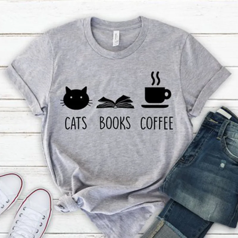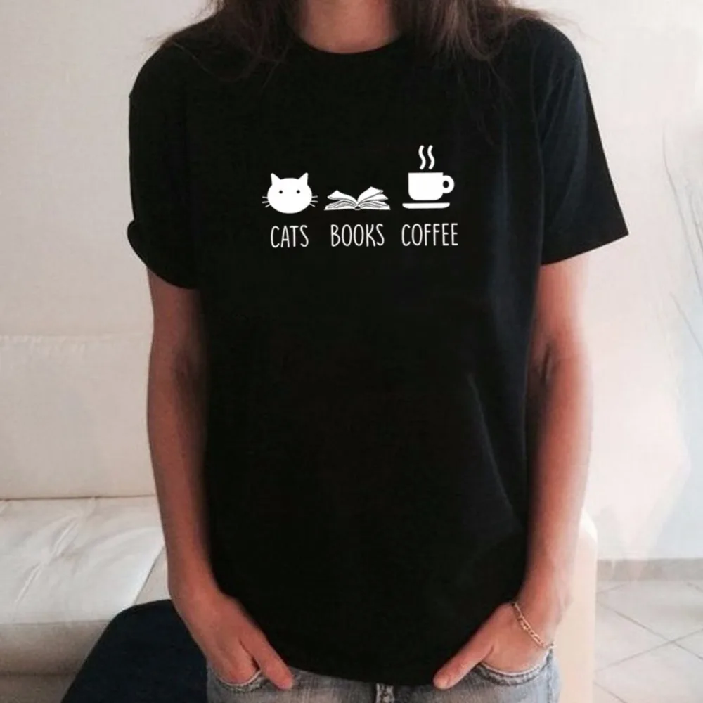 Женская футболка из 100% чистого хлопка, футболка с принтом книги, кофейного цвета, женская футболка с коротким рукавом, женские топы, одежда, рубашки