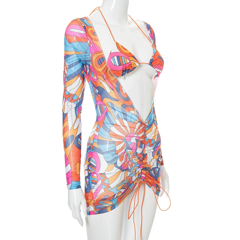 Женский сетчатый комплект из двух предметов Giyu с принтом, осень 2...