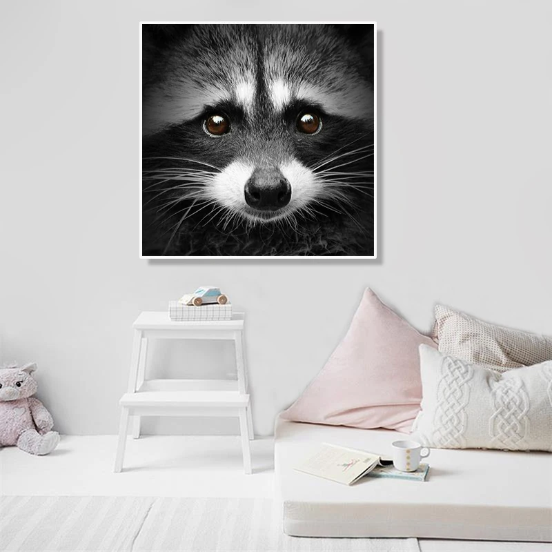 Современные животные черно-белые милые картины с енотом на холсте плакаты и принты настенные картины для декора гостиной