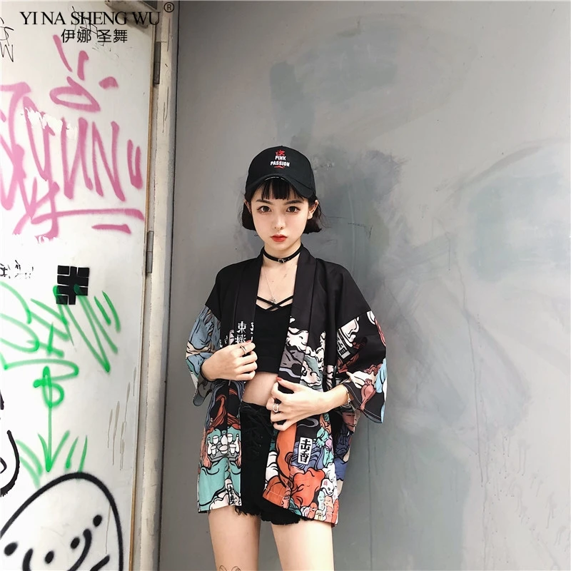 Японское кимоно женское пляжное, кардиган для косплея, жакет-рубашк...