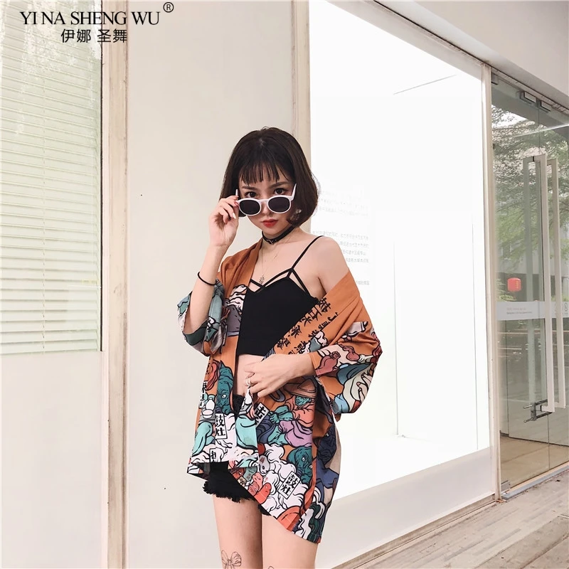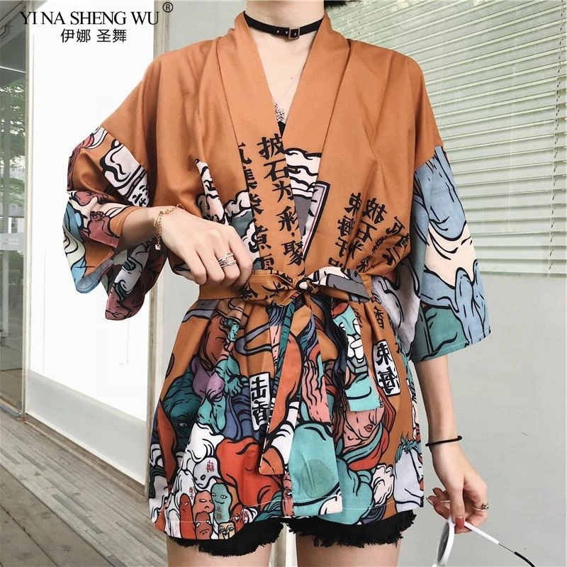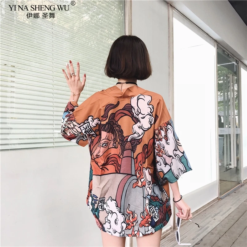 Японское кимоно женское пляжное, кардиган для косплея, жакет-рубашка в японском стиле, юката, лето 2020