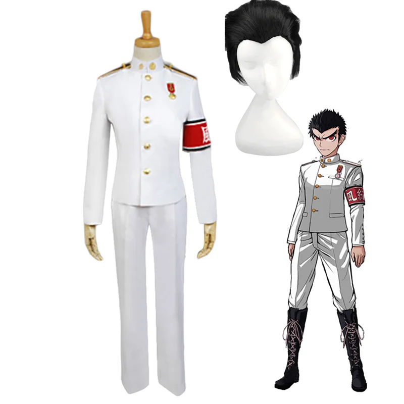Костюмы для косплея Dangan Ronpa Kiyotaka Ishimaru, мужская униформа, пальто, штаны, полный комплект, черные парики, обувь Cos, одежда