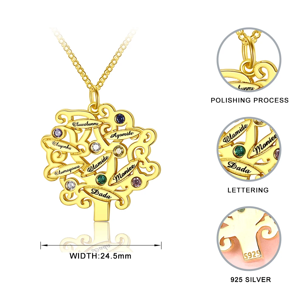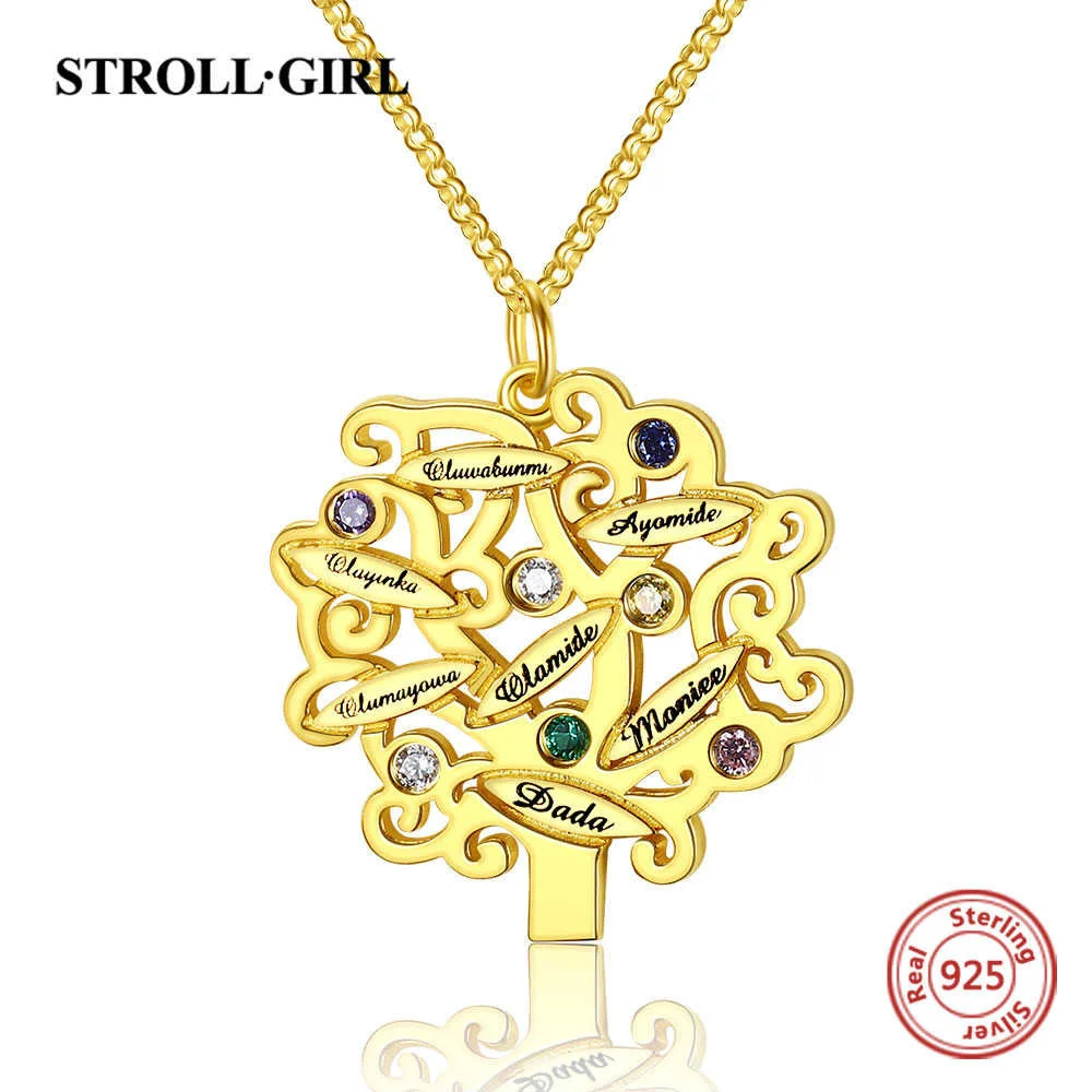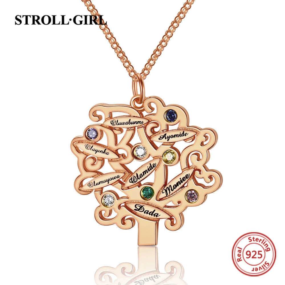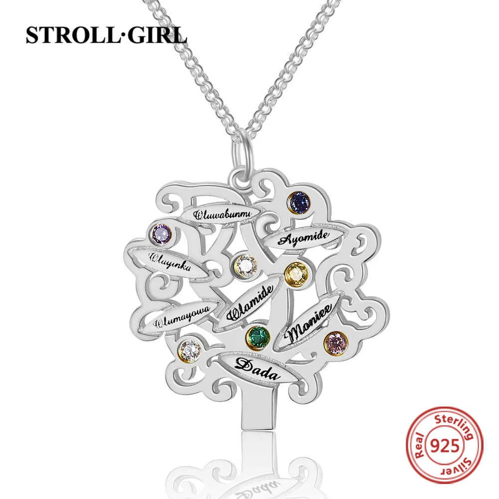 Персонализированные семья кулон цепь изготовленный на заказ для детей 4, 5, 6, 7, на день рождения, имена 925 стерлингового серебра древо жизни, ожерелье для женщин, ювелирные изделия