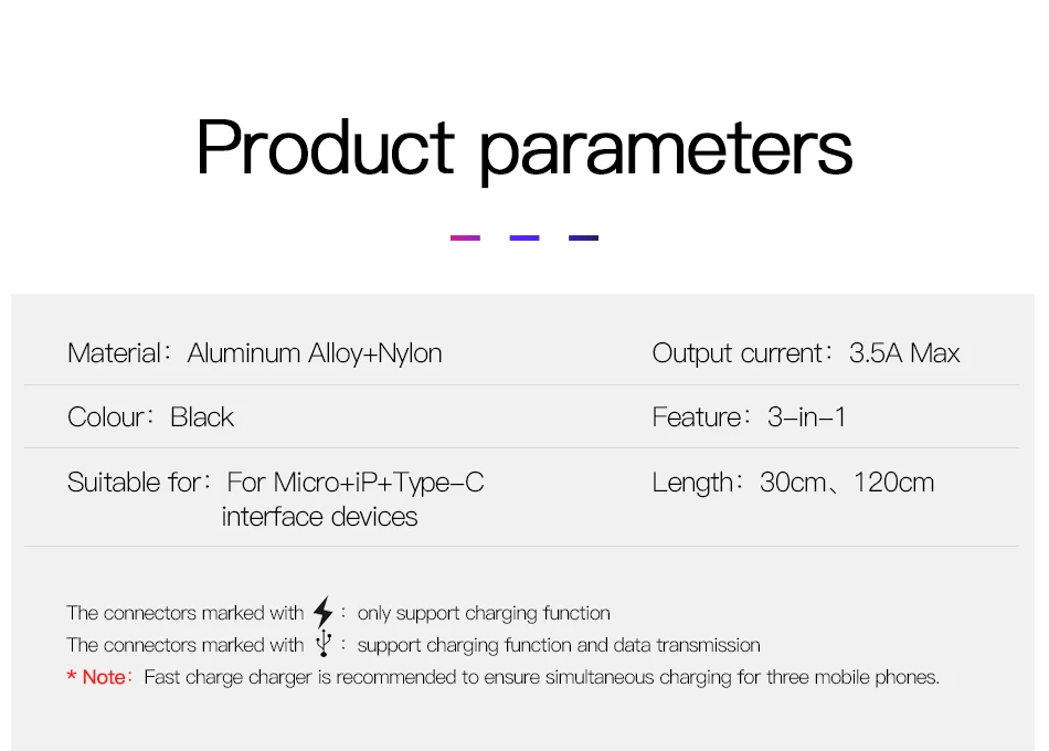 Function 3USB Cable for iPhone XS Max XR 11 Pro 8 7 Plus