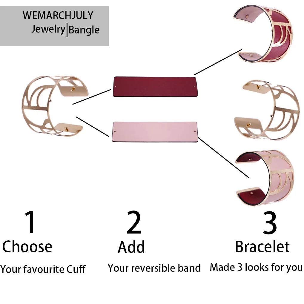 Женский браслет из жоржета, 2019, с розовым золотом, маншетный браслет, Feeme, Acier, двусторонний широкий кожаный браслет, браслеты