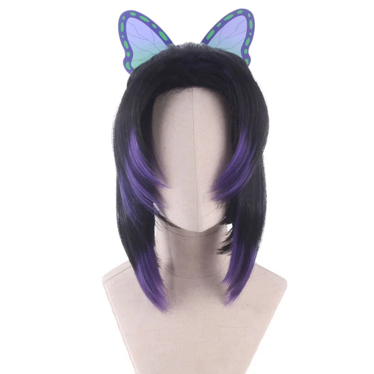 Хэллоуин косплей демона Slayer аниме модный парик 35 см черный фиолетовый градиент короткий прямой сплит парик термостойкие волосы