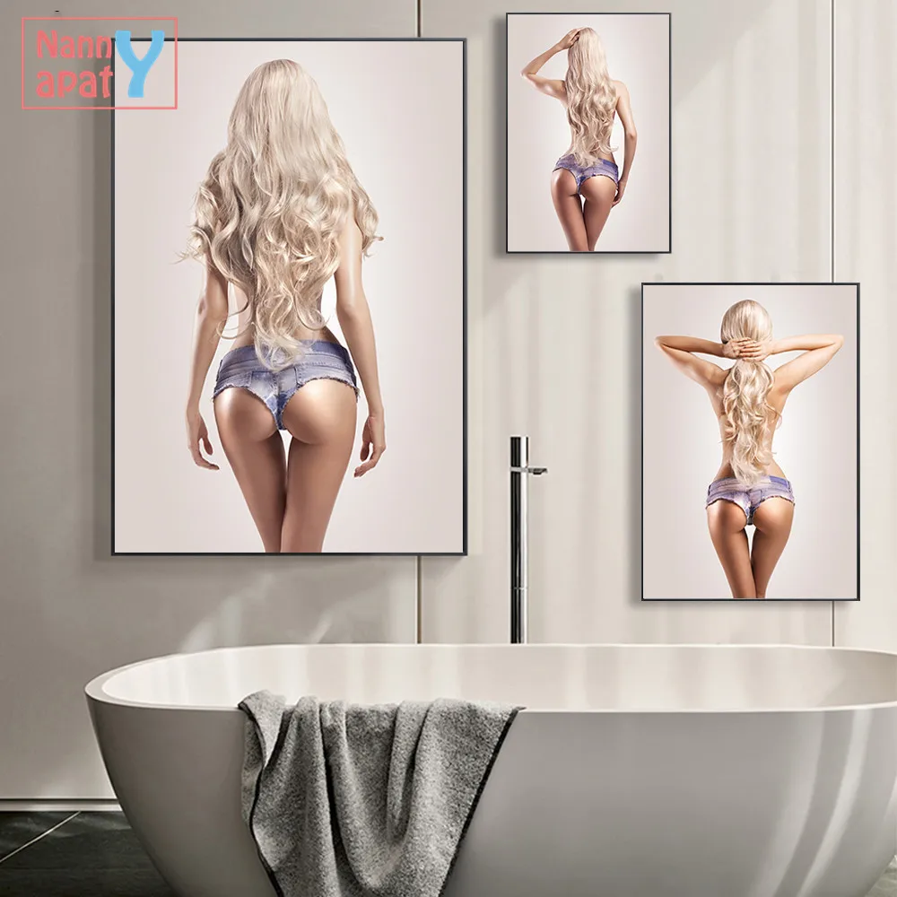 Сексуальная полуобнаженная Картина на холсте, плакаты и принты блонд без одежды для девушек, картины на стену для ванной, гостиной
